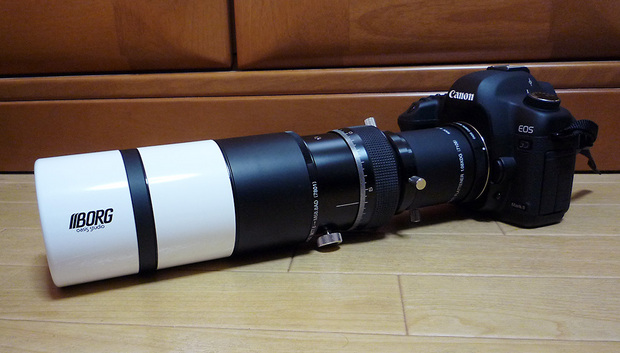 今回の作例に関して少し説明があります。輝星に反射望遠鏡で撮影したような光条がでています。しかし、これはレンズのせいではありませんので、皆様どうぞご安心ください。この作例は、少し以前のもので、中川さん推奨の形式で撮影したものではありません。機材写真をご覧いただくと分かるように少し変則的な組み合わせです。この組み合わせだと若干けられていたようで、光条が少し出てしまいました。(さらにヘリコイド内の植毛紙が2箇所、かなり浮いていたことも影響しているようです)