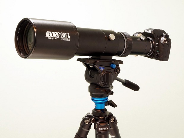 BORG90FL(80Φ金属鏡筒仕様)+ペンタックスK5IIsボデーをカメラ三脚に接続 ![]()