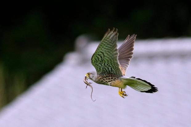 中川さま。新製品のBORG107FLのテストは順調でしょうか。早く色々な作例を 期待しています。撮影仲間からチョウゲンボーが営巣し始めたので撮影に行こうと誘われ行ってきました。2週間前に行ったときは決まった枝や営巣場所近くで 盛んに交尾が行われましたが、今回は状況が変化し、出が悪い状況で諦め かけていましたが、近くの街灯やアンテナ等に止まって芝生に出てくる トカゲを捕獲して飛翔する姿が撮影出来ました。 天気が良いと絞りも絞れISO感度も低く設定できるので飛翔撮影も 楽しく撮影が出来ました。そろそろ暖かくなってきたのでヤマセミ撮影にも復帰したいなと思って います。