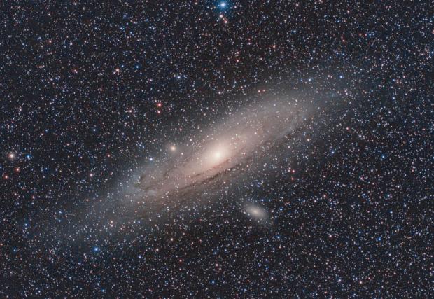 アンドロメダ銀河 撮影日:2016年8月6日 撮影地:天城高原 BORG71FL+レデューサー0.72xDGQ 赤道儀:SWAT-200(PHD2で一軸オートガイド) オートガイダー:QHY5L-II、コーワLM75JC カメラ:Canon EOS 6D (SEO-SP4改造) ISO感度:1600 露出:300秒×11枚 撮影者:蒼月様