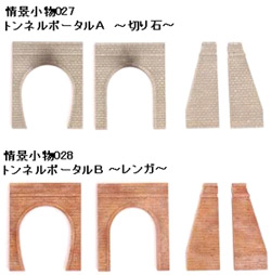 情景小物 トンネルポータル 直線とカーブ両方に対応したトンネルポータルのセットです。 どちらか一方を選んで、レイアウトに組み込んでお使い頂けます。 A(切り石)とB(レンガ)の2種があります。