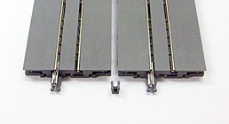 | 「ワイドトラムレール」は、アスファルトを再現した路面とレールが一体となっていますので、簡単に路面軌道を再現することができます。 |