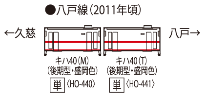 ●八戸線や津軽線で見られた白色に赤い帯が入った盛岡色で再現