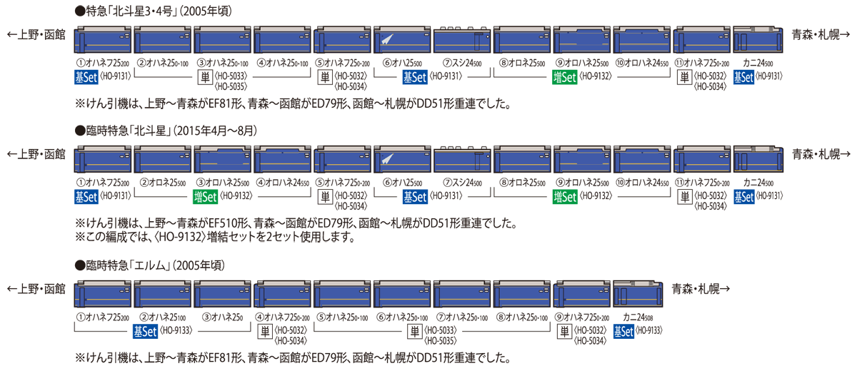 ●北斗星、エルムの増結に使用するオハネフ25-0形1両の単品