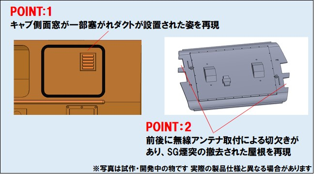 ●屋根板は前後に無線アンテナを避ける切欠きのある姿を新規製作で再現
