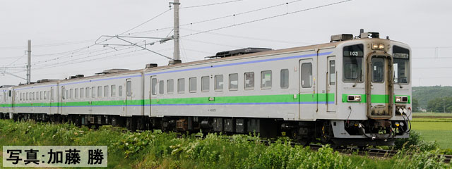中間に付随車キサハ144形を連結した3両編成を構成し、札沼線でキハ40・141・142形と連結されながら札幌近郊で活躍しました。