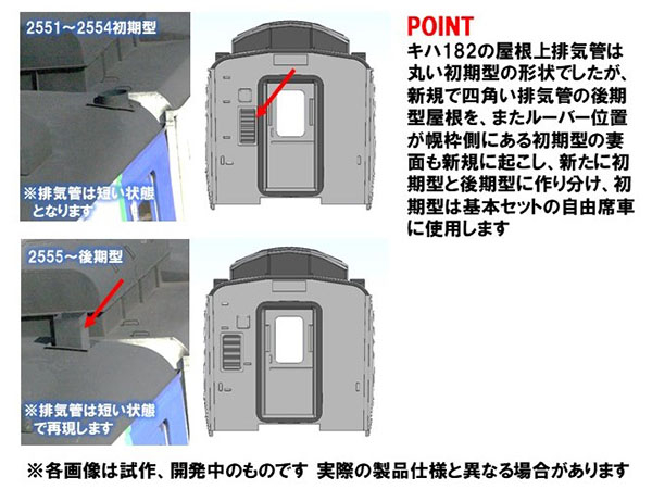 ●特急「北斗」用の2550番代で、実車においてトレインマークが幕式になってキハ182のトイレ窓が埋められた姿で再現
