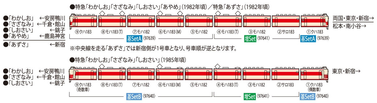 ・モハ182・183-0形、サロ183-0形が各1両の計3両の増結セット