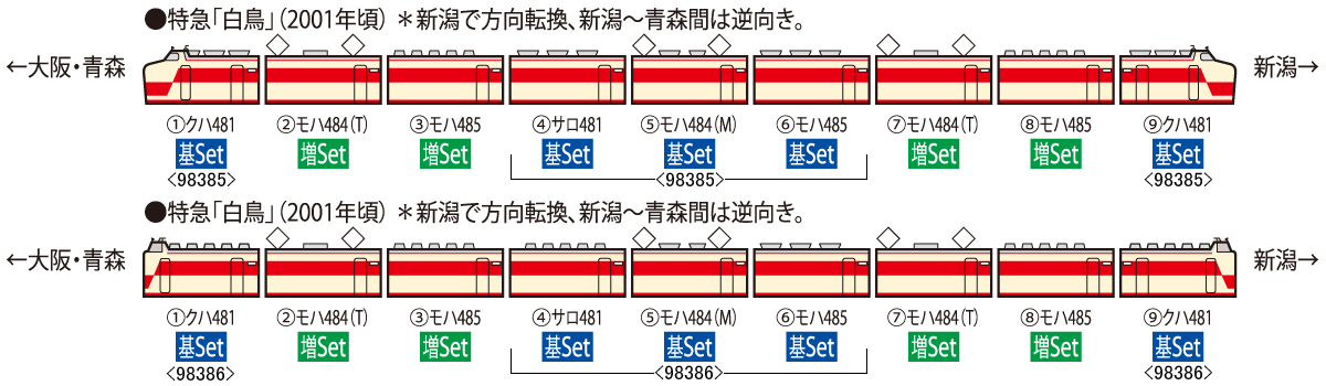 電車 JR 485系特急電車(京都総合運転所・白鳥)増結セット