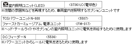 ●ヘッド・テールライトは、別売りのFM-017電源ユニット、パワーユニット・D.C.フィーダーを使うことで点灯