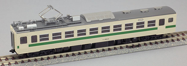 | 増結セットのモハ454の屋根上は1列タイプのベンチレーターが配置された姿を再現しています。 |