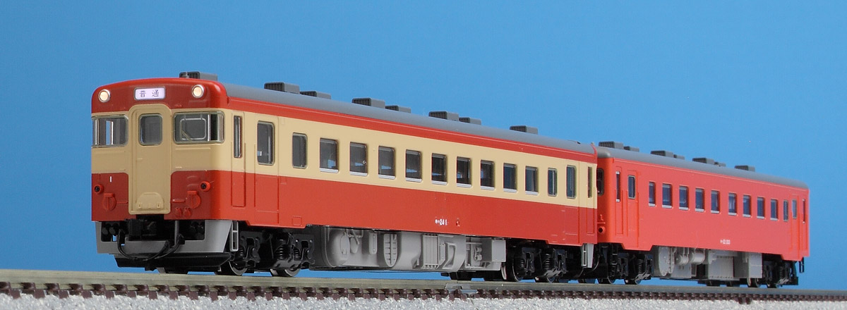 | キハ45系は1966年に登場した近郊形ディーゼルカー。トミックスではキハ45形、キハ23形に続き、極寒冷地向け片運転台のキハ46形、、両運転台のキハ24形を製品化します。上写真はキハ46形ディーゼルカーセットのT車、M車の編成例です。 |