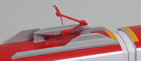 | シングルアーム式パンタグラフは可動式で、パンタ台本体の下面を実車同様に赤色で表現。 |