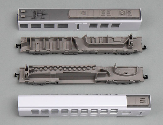 グループ専用の個室とサロンを持つ4号車、ダブルデッカーで1、2階ともフリースペースのカフェとなっている3号車と、バラエティ豊かな中間車も再現しています。