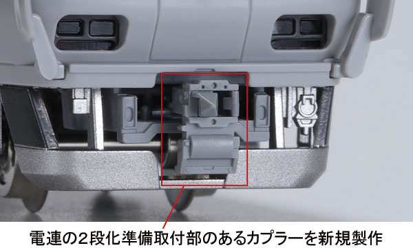 電連の2段化準備取付部のあるカプラーを新規製作で再現しています。