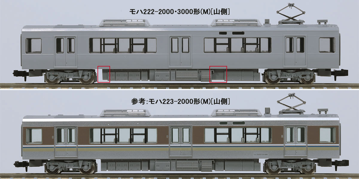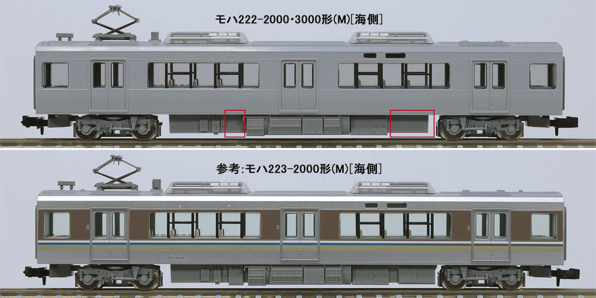 モハ223-2000形とは異なる床下機器パーツを使用し、これらの姿を再現しています。