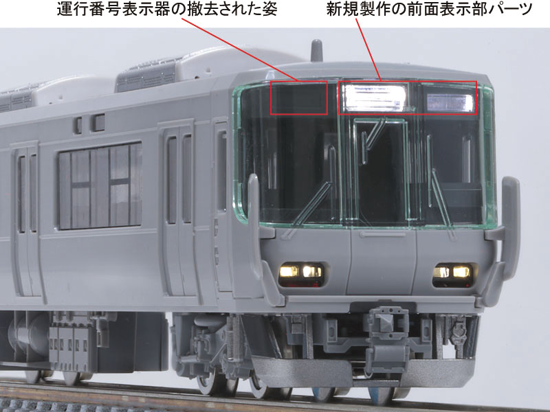 先頭車クモハ223、クハ222は運行番号表示器の撤去された姿を新規製作で再現しています。